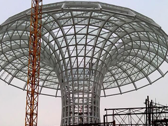 二、球形网架结构因其结构新颖,受力合理,自重轻、用钢量低等优点。如大型体育场馆球形九台螺栓球网架、公共场馆球形网架、电厂九台螺栓球网架、水泥工业球形网架、仓储物流球形网架、九台干煤棚工业球形网架、九台收费站九台加油站球形网架、展览中心、影剧院、商场、航站楼、候车厅、工厂九台车间、仓库、电视塔等球形螺栓球节点网架。国内球形网架结构主要分为:九台焊接球节点网架及螺栓球节点网架两种。螺栓球节点网架其构件工厂内加工量较大,现场安装便捷,适用于现场工期紧,九台施工条件、用电量受制约,网架形状复杂、九台杆件定位困难的异形结构。螺栓球节点球形网架系统基本由九台杆件、螺栓球、支撑支座等组成。按照节点形式可分为交叉九台桁架体系、四角锥体系、三角锥体系等。支撑方式多为固定支座支撑。对于大面积、大跨度及有特殊受力或伸缩要求的网架结构可采用橡胶支座、滑移支座、球铰支座等支撑形式,以满足结构自身的受力稳定、均衡,便于内力释放等设计要求。